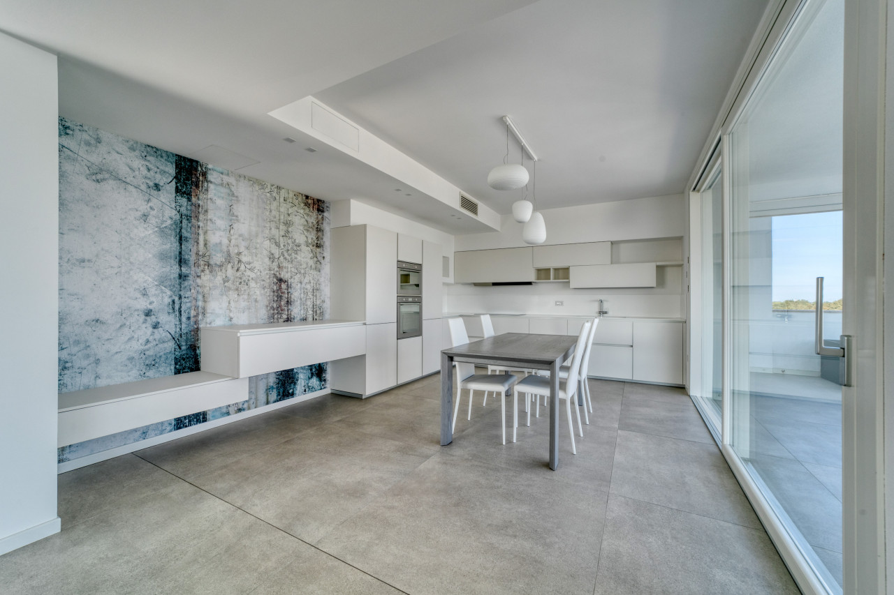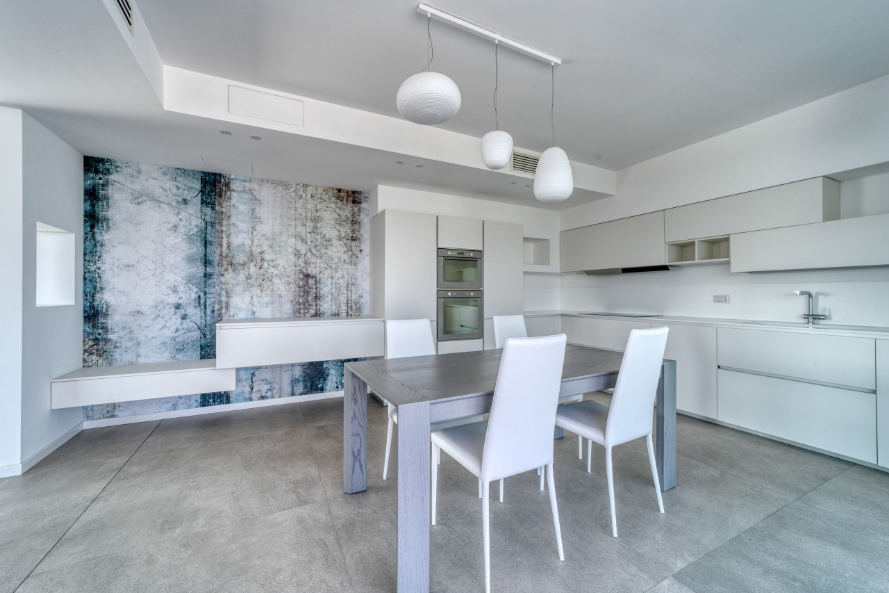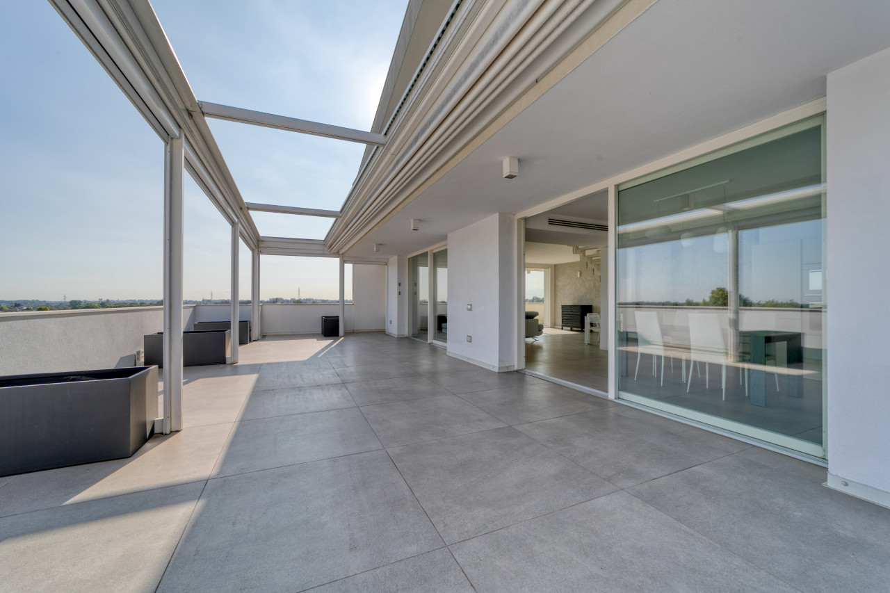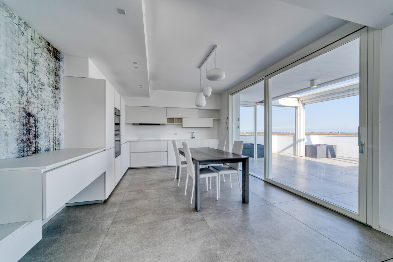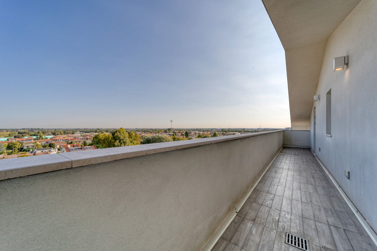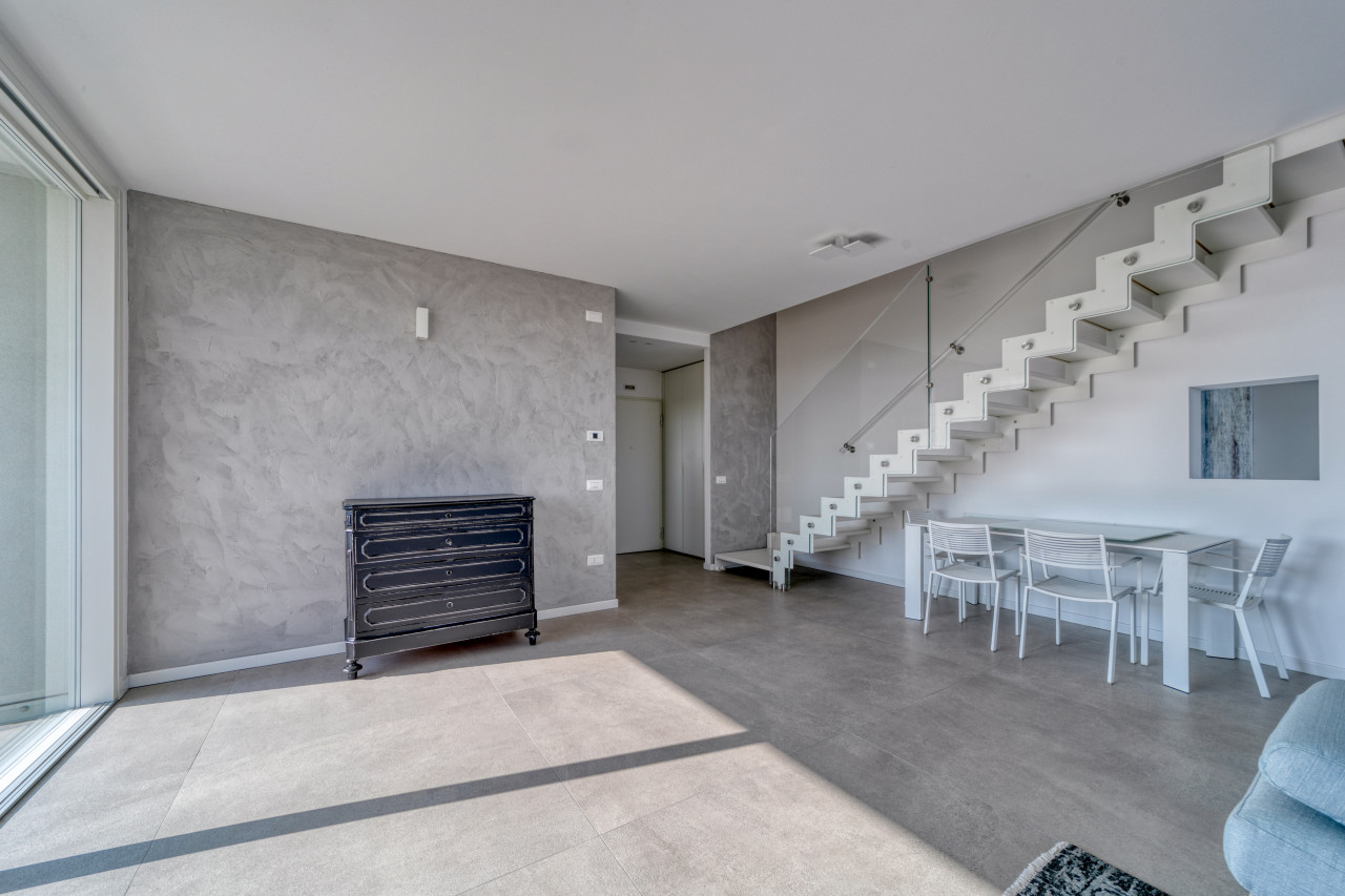 Offre una splendida zona giorno open space valorizzata dalle ampie vetrate, con accesso alla splendida terrazza panoramica di Mq 100 sviluppata su 2 lati, anti e bagno a giorno. La zona notte mansardata con travi in legno a vista sbiancate, propone 3 spaziose camere da letto, 2 bagni finestrati con doccia e locale ad uso cabina armadi - ripostiglio. A completare l'abitazione, un ampio garage doppio in lunghezza con basculante motorizzato e cantina. L’appartamento non è mai stato abitato e viene venduto con arredo compreso nel prezzo.