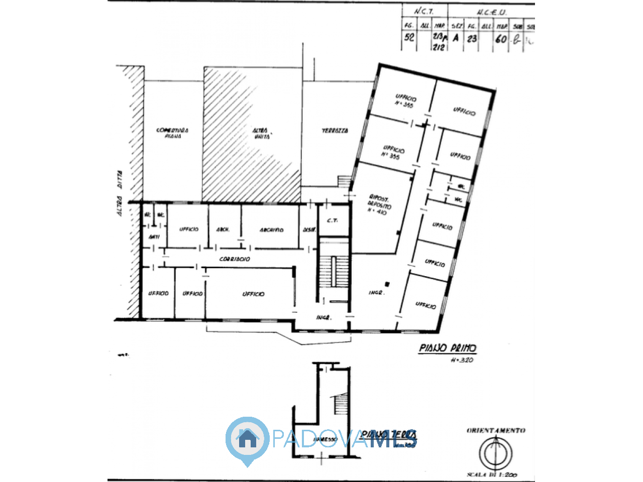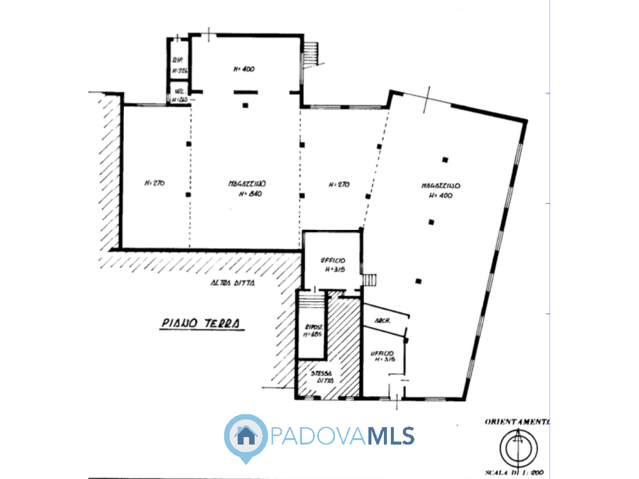 IL PIANO TERRA, censito a magazzino in classe energetica G con Epg 314,78 ha una metratura di 777mq con una altezza che varia dai metri 4,00 ai metri 8,40 , ha un ampio ingresso carraio e tutte le pareti sono ampiamente finestrate.